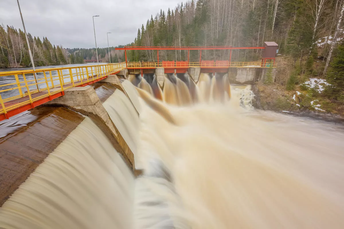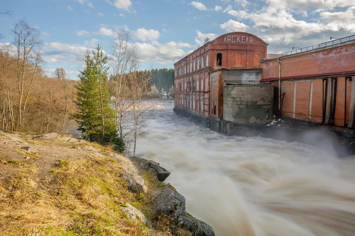 Водопад и водоскат на месте бывшей финской бумажной фабрики.
