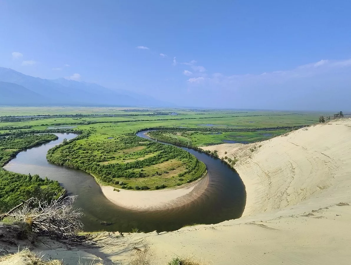 Посещение Золотой подковы Баргузинской долины. В этом месте река Аргада делает поворот на 180 градусов в виде подковы, образуя песчаную гряду высотой более 100 метров.