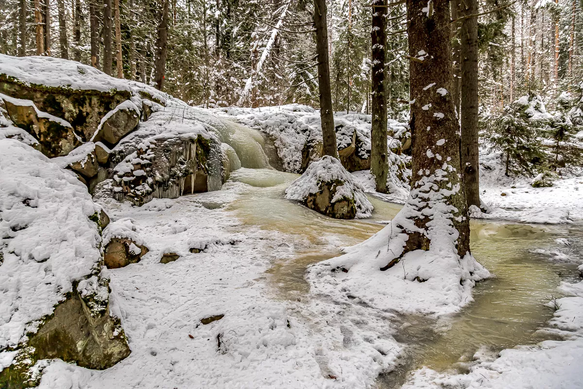 Сегодня у нас геологический памятник ледникового периода протяженностью около 50 км, Уксинская озовая гряда. Мы с вами посмотрим лишь ее небольшой кусочек в пару сотен метров. Зимой хорошо видны ее формы в виде огромных валунов на берегу Ладоги. По пути у нас будет несколько исторических объектов времен Российской империи и СССР: старый советский маяк, бетонный ДОТ линии обороны времен второй мировой войны и порубежный камень между Финляндией и СССР, установленный в 1934 году. Мы также заедем на небольшой зимний водопад, где 300 лет назад была первая водяная лесопилка.