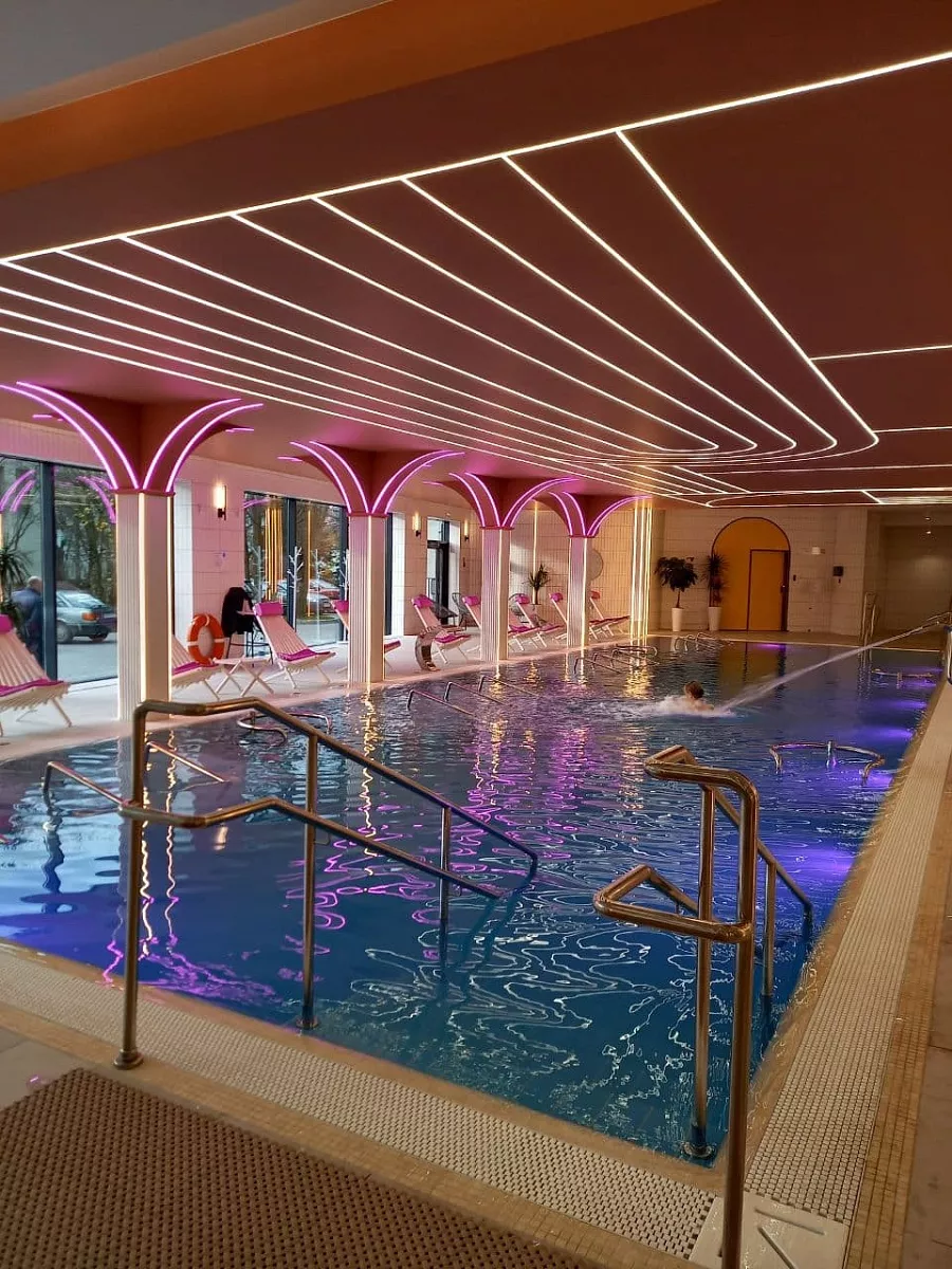 Затем по желанию, прогуляемся по городу или посещаем Баден СПА центр, где Вы поплаваете в закрытом и открытом бассейне с морской подогреваемой водой, погреетесь в разнообразных банях и саунах: русской, финской, хамам, травяной, можжевеловой, янтарной и др.