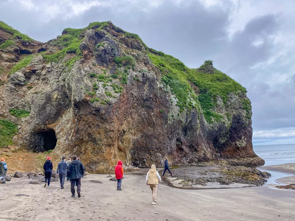 Утром мы отправимся на юг острова Итуруп. Нас ждёт прогулка по берегу бесконечного Тихого океана и залива с романтичным названием Касатка. Здесь расположен массив Чёртова скала, где до сих пор сохранились руины японских укреплений с военных времён. Скалы испещрены туннелями и переходами, а в одном месте осталось даже помещение подземного госпиталя. Залив Касатка печально известен тем, что отсюда в 1941 году стартовали авиавойска, чтобы нанести удар по Перл-Харбор.
