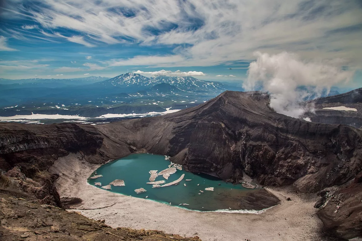 Поездка через Вилючинский перевал, плато вулкана Горелый, в район Мутновского вулкана на машине повышенной проходимости КАМАЗ.