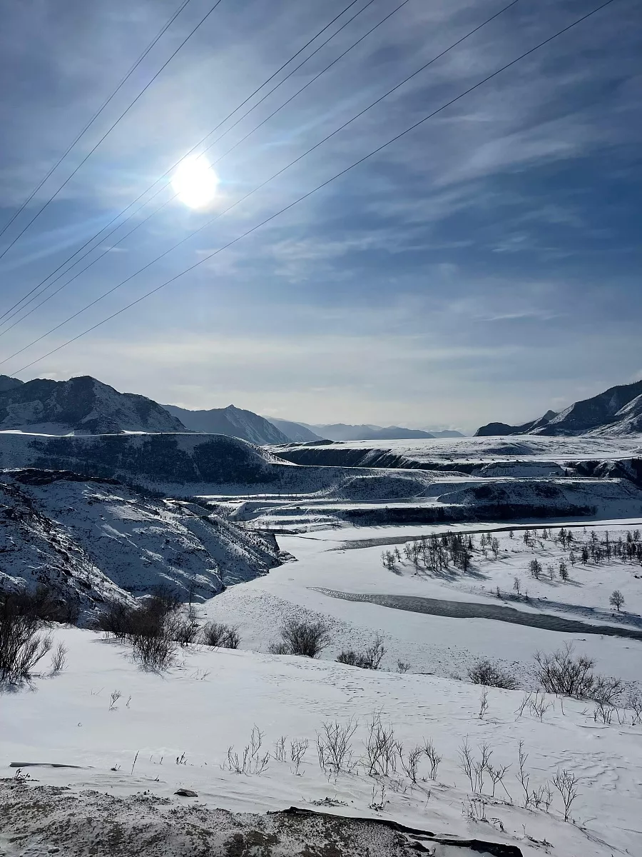 Слияние Чуи и Катуни величественное природное явление, где две могучие реки встречаются в зимнем танце. В это время года их воды, покрытые ледяным панцирем, создают неповторимый пейзаж, где природа демонстрирует свою силу и красоту.