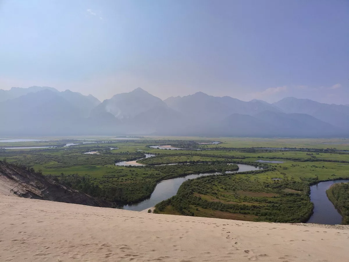 Посещение Золотой подковы Баргузинской долины. В этом месте река Аргада делает поворот на 180 градусов в виде подковы, образуя песчаную гряду высотой более 100 метров.
