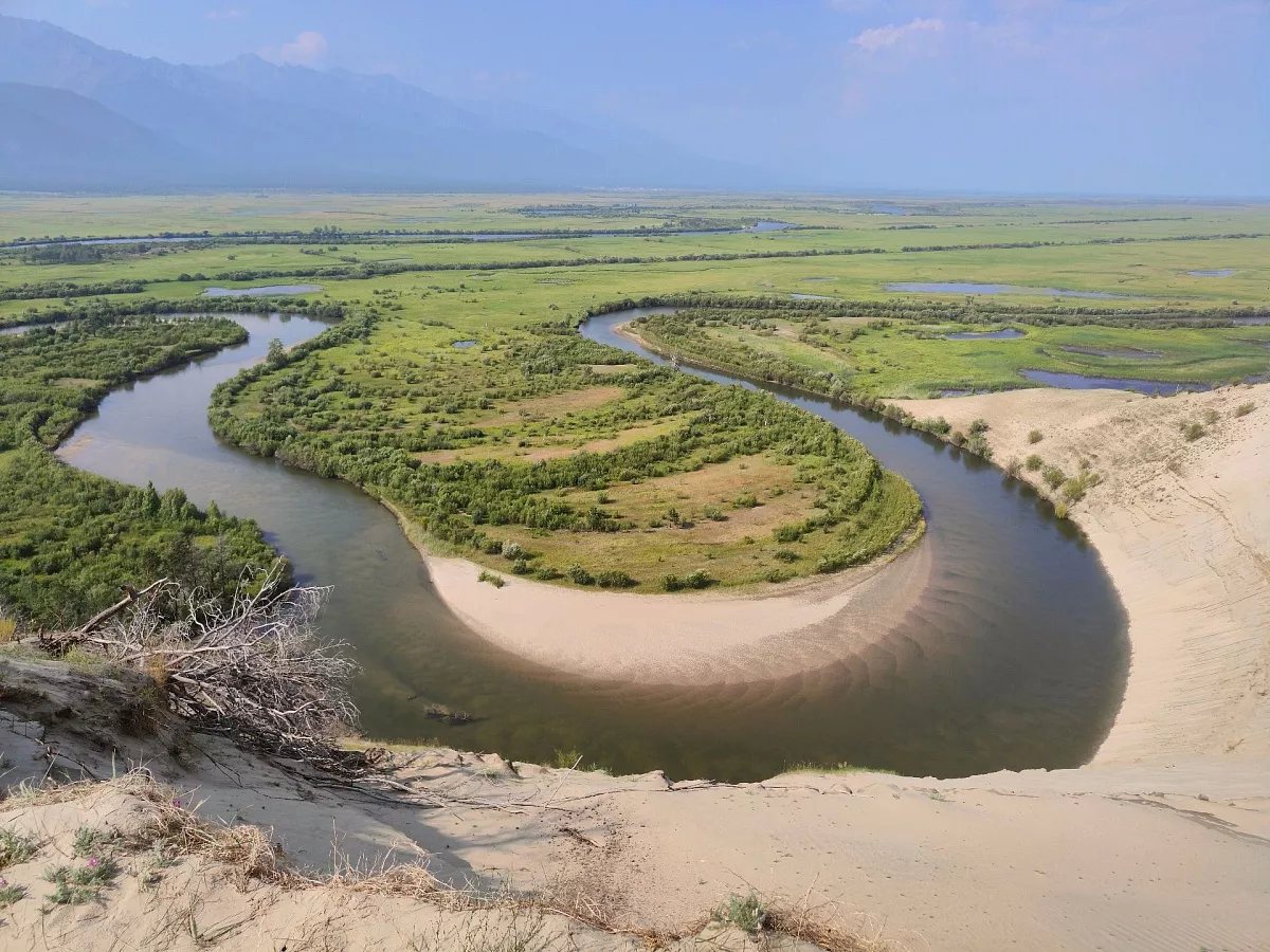 Посещение Золотой подковы Баргузинской долины. В этом месте река Аргада делает поворот на 180 градусов в виде подковы, образуя песчаную гряду высотой более 100 метров.