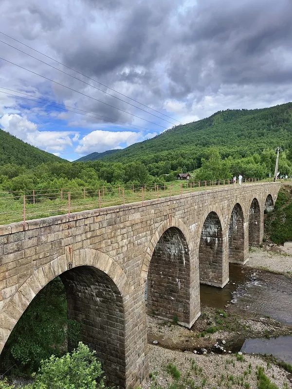 Выезд из гостиницы. Экскурсия по Кругобайкальской железной дороге. На экскурсионном поезде вы проедете по участку старой Кругобайкальской дороги, в 1905 г. золотой пряжкой соединившей Транссибирскую магистраль стальной пояс России. Большой интерес у туристов вызывают тоннели, мощные подпорные стенки, виадуки, выполненные из тесаного камня, деревянные строения в стиле модерн начала ХХ века. Дорога и территория, прилегающая к ней, включают в себя не только многочисленные памятники инженерно-технического искусства и архитектуры, но и разнообразные памятники природы геологии, минералогии, зоологии, биологии.