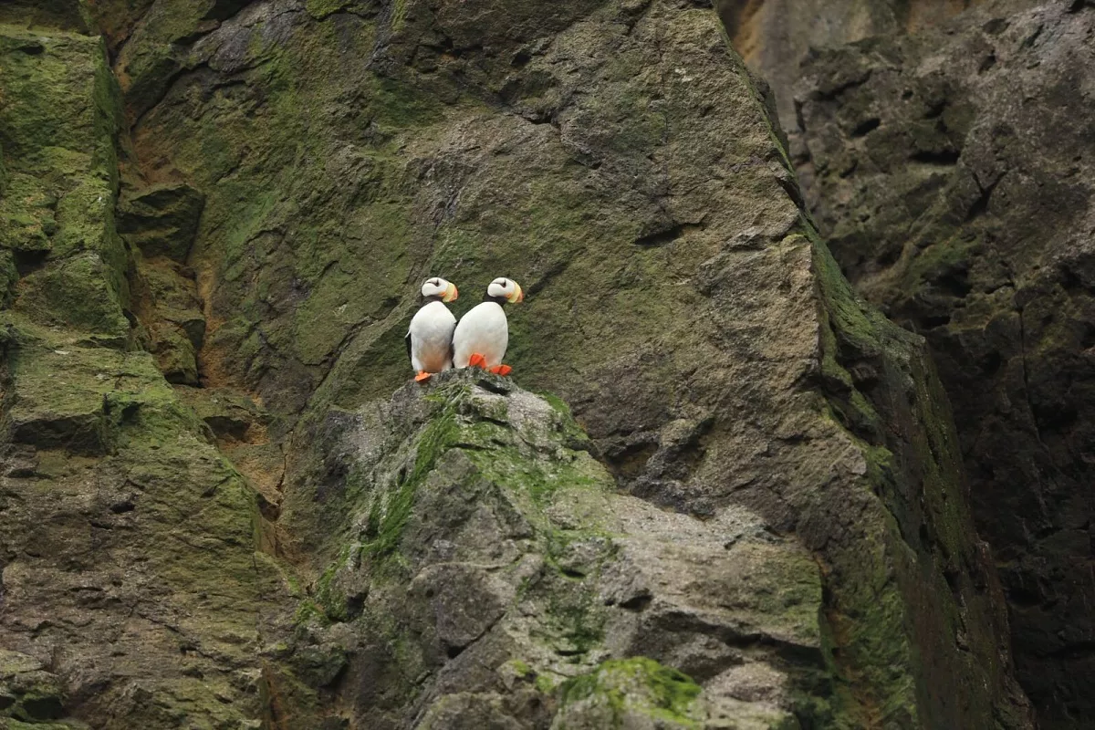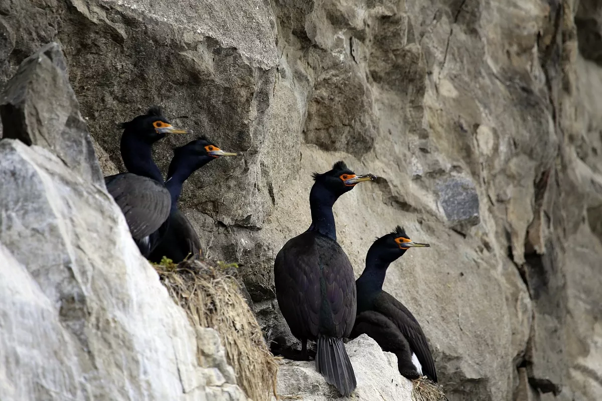 Далее судно пройдет к Глупышиным столбам, на скалах располагаются многотысячные колонии говорушек, чистиков и бакланов.