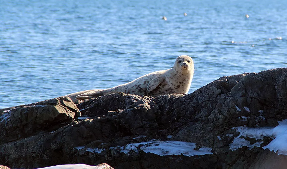 Визитная карточка мыса Северного лежбище пятнистого тюленя ларги. За жизнью морских обитателей удобно наблюдать с оборудованной смотровой площадки.