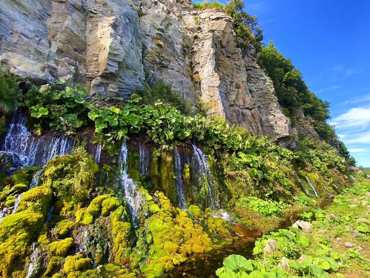 Очень яркое впечатление оставило разнообразие рельефа, которое мы преодолевали пешком или карабкались вверх и спускались, проходили вброд и через массив бамбучника. Следы медведей, ягоды кивии, полёт орла, устрицы под ногами, термальные природные ванны, никогда не забудутся.