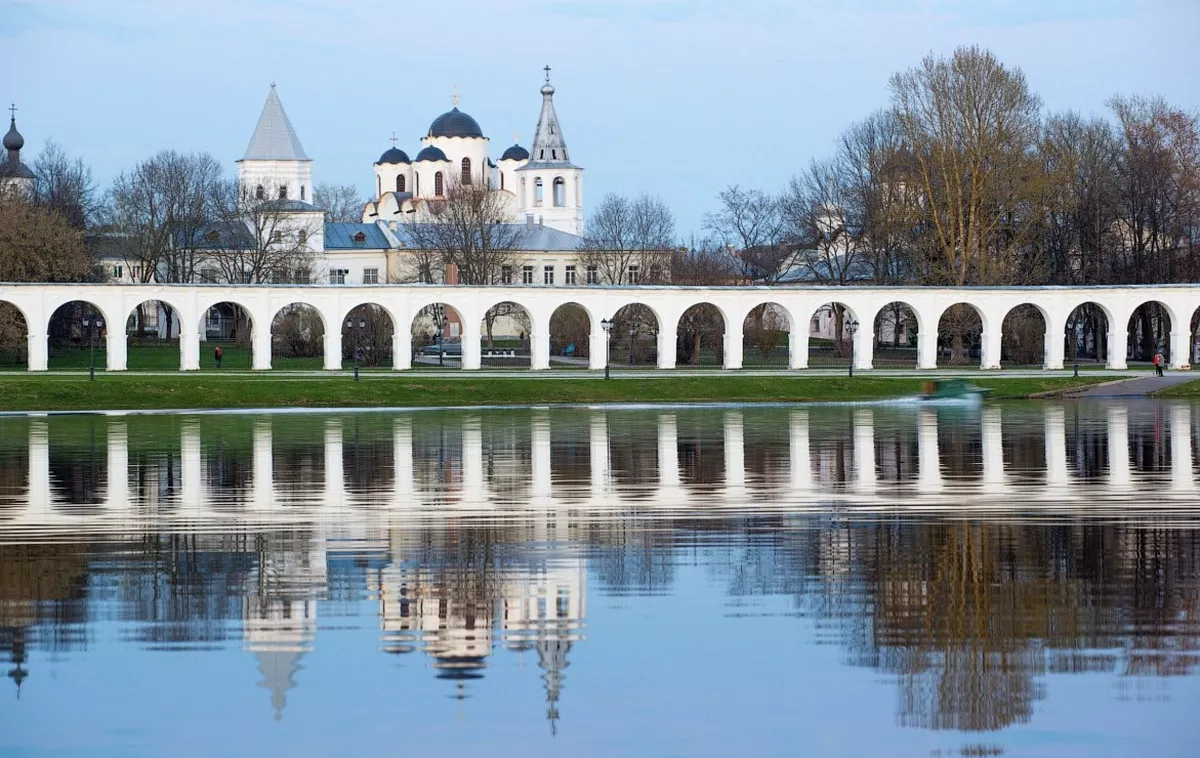 Экскурсия по Кремлевскому комплексу Стены и башни Древнего Детинца 1044 г. был заложен Ярославом Мудрым - стены и башни Древнего Кремля, здесь проходило Вече, выборы Посадника, велось летописание - Лихудов корпус; Софийский собор (XI в.) выдающийся памятник древнерусского зодчества,; Софийская звонница XYI в. и уникальная коллекция древних колокол Великого Новгорода (XVI XVII вв.); памятник Тысячелетие России - энциклопедия государства российского, запечатленная в бронзе это летопись о тысячелетней истории российского государства
