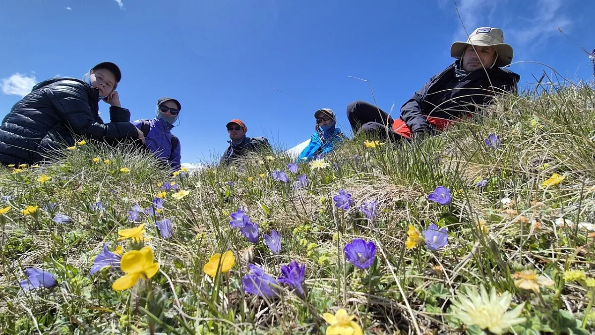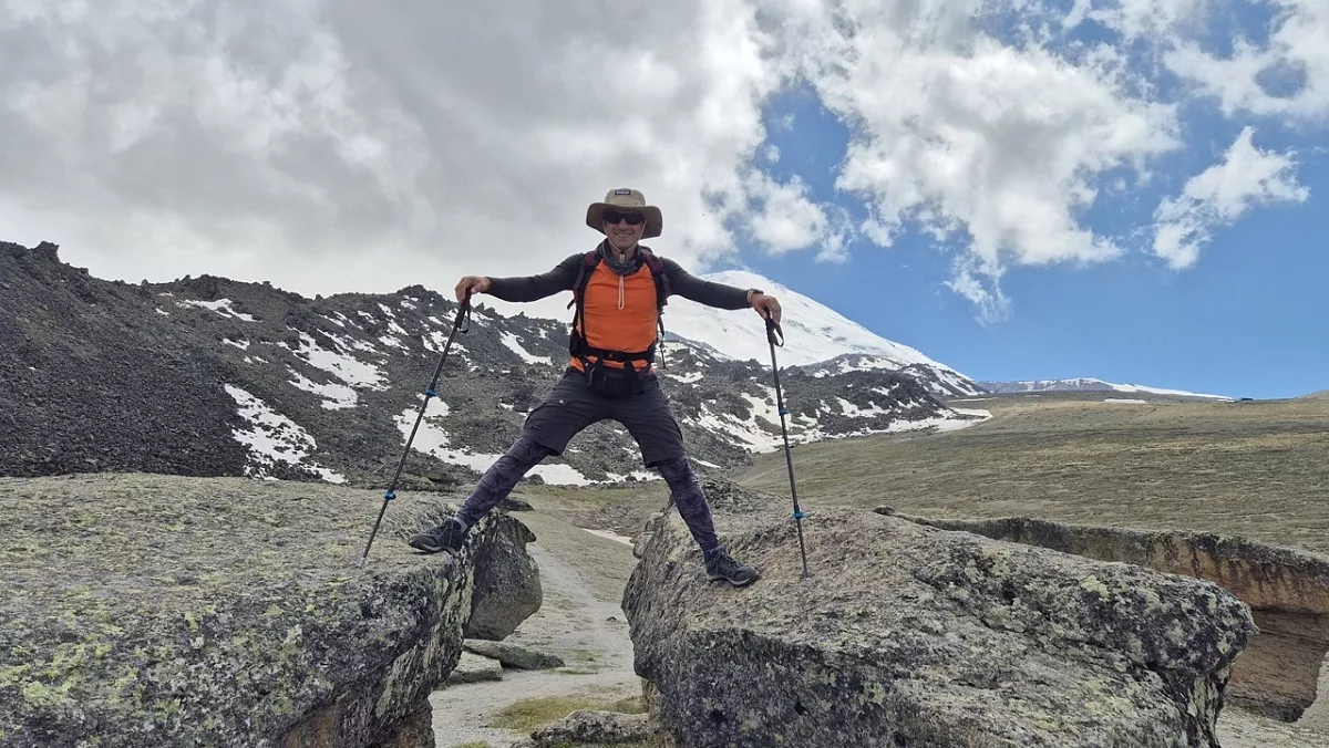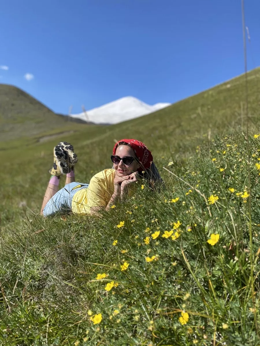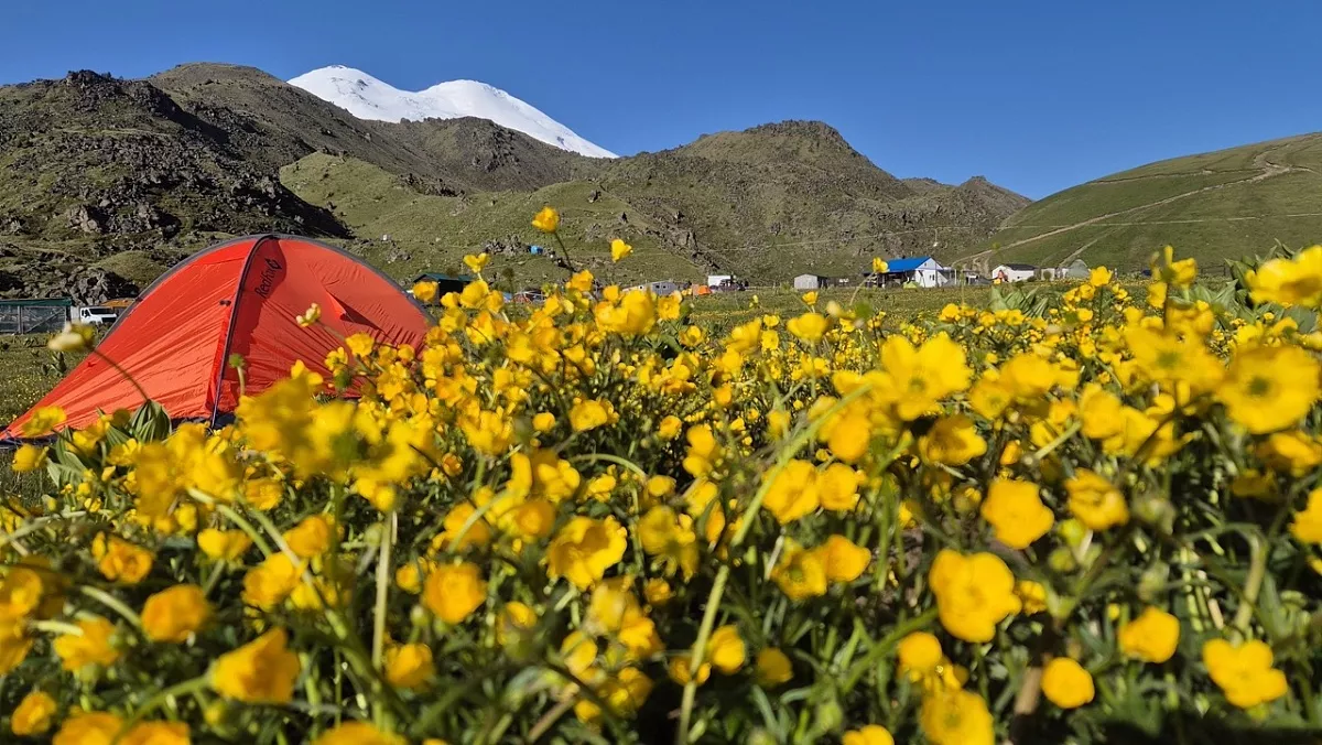 По пути мы посетим смотровую площадку в урочище реки Харбас, известную как Скалы Аватара. Затем продолжим путь, обогнём гору Тузлук и подъедем к горе Сирх. Здесь мы повернем направо и по грунтовой дороге спустимся к реке. Там нас будет ждать грузовой транспорт, который поможет пересечь бурный поток Кызылкола и добраться до поляны национального парка. Здесь мы установим лагерь, поужинаем, прогуляемся по окрестностям и встретим закат с видом на Эльбрус.