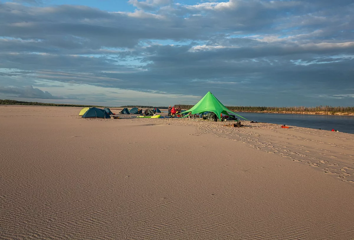 По приезду в Кысыл Сыр разбивка лагеря на берегу р.Вилюй. Ужин и подготовка к походу