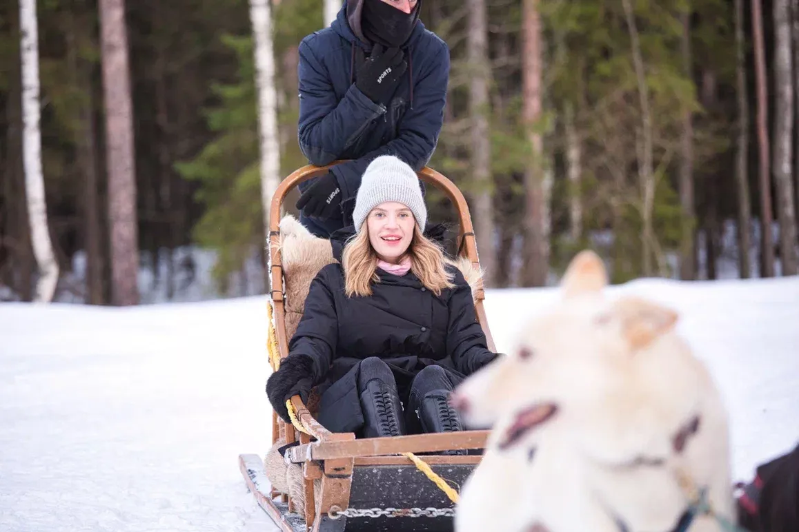 После экскурсии у вас будет возможность пересесть в упряжки и прокатиться с небольшой круг по красивому заснеженному лесу (500 метров). Услуга катания на собачьих и оленьих упряжках оплачивается отдельно.