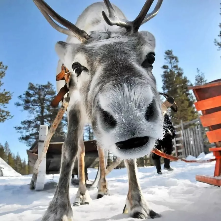 Сначала прогуляемся по ферме, где живут северные олени и их оленята, покормим их с рук ягелем любимым лакомством помощников Талвиукко. Затем в сопровождении инструктора пообщаемся с аляскинскими и сибирскими хаски и маламутами в питомнике спортивных ездовых собак.