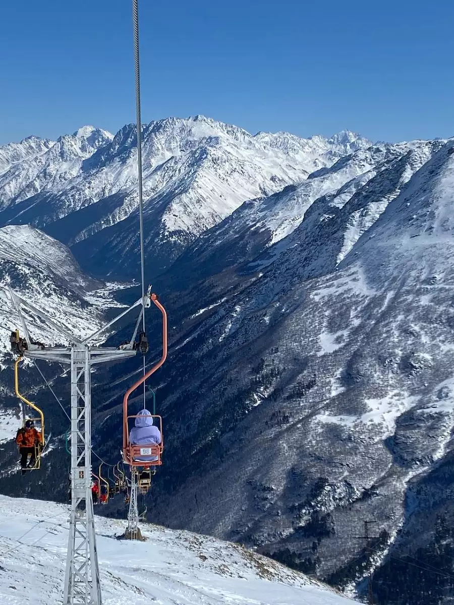 На Чегете можно просто погулять, подняться на подъемнике, именно отсюда самый лучший вид на ЭЛЬБРУС, он как на ладони. Именно тут самые вкусные Чебуреки, и кафе с панорамными окнами. Еще можно прогуляться до ледника Семерочка, есть качели над обрывом. А внизу много уютных кафе и не малый рынок с сувенирами.