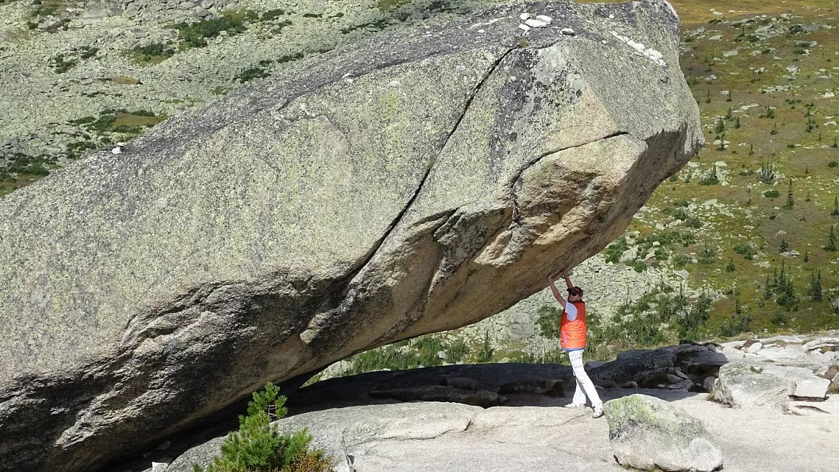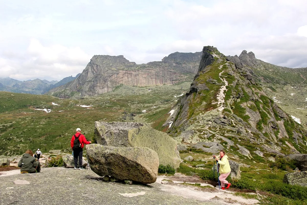 14:30 Маршрут на Висячий камень. Прекрасный вариант для первого знакомства с природным парком Ергаки. Подходит для туристов практически любого уровня физической подготовки. Встреча с хозяином этих мест Спящим Саяном. Если присмотреться, его можно увидеть в очертаниях гор: он лежит на спине, сложив руки на груди. Вы услышите красивую легенду о каменном великане и узнаете, кто сможет его разбудить, столкнув Висячий Камень.