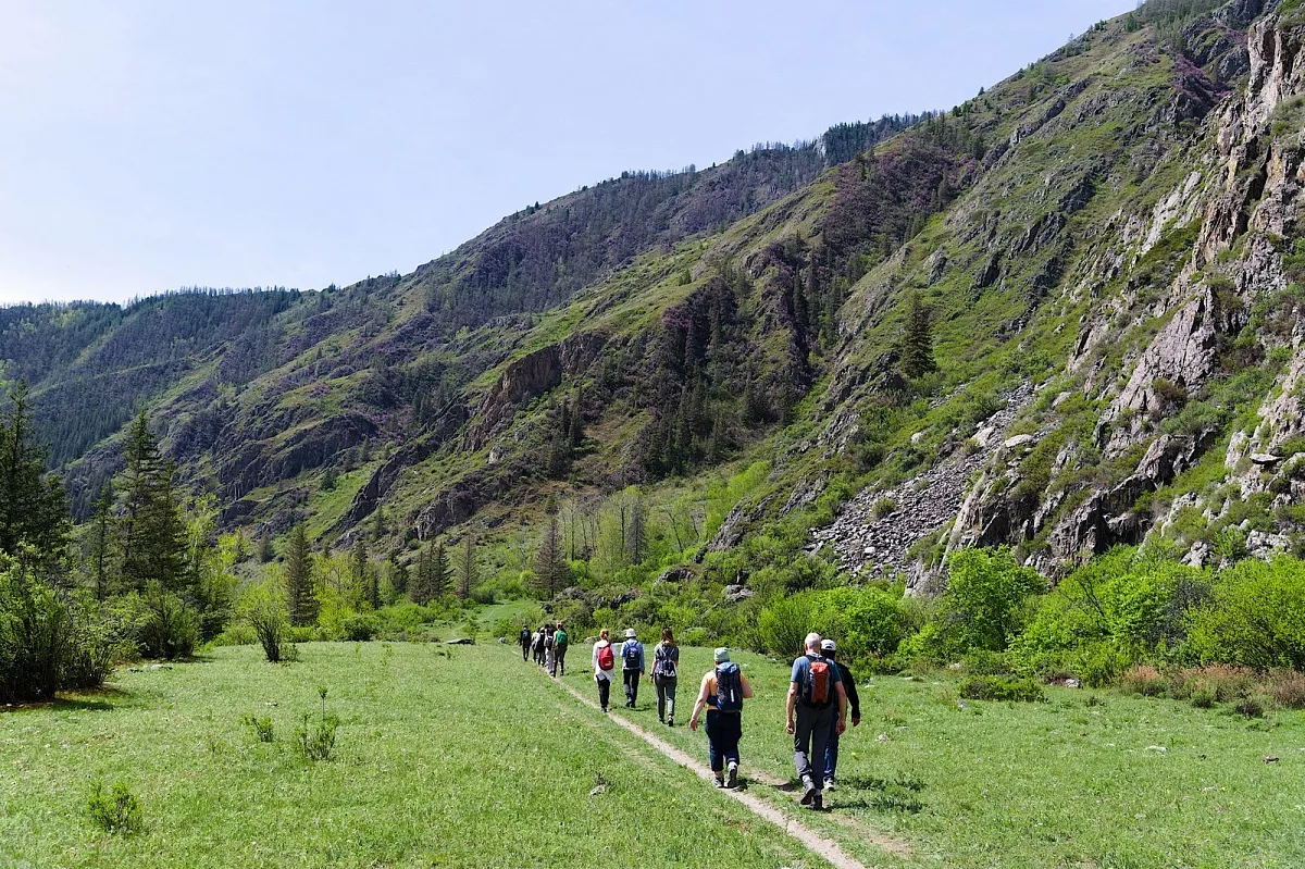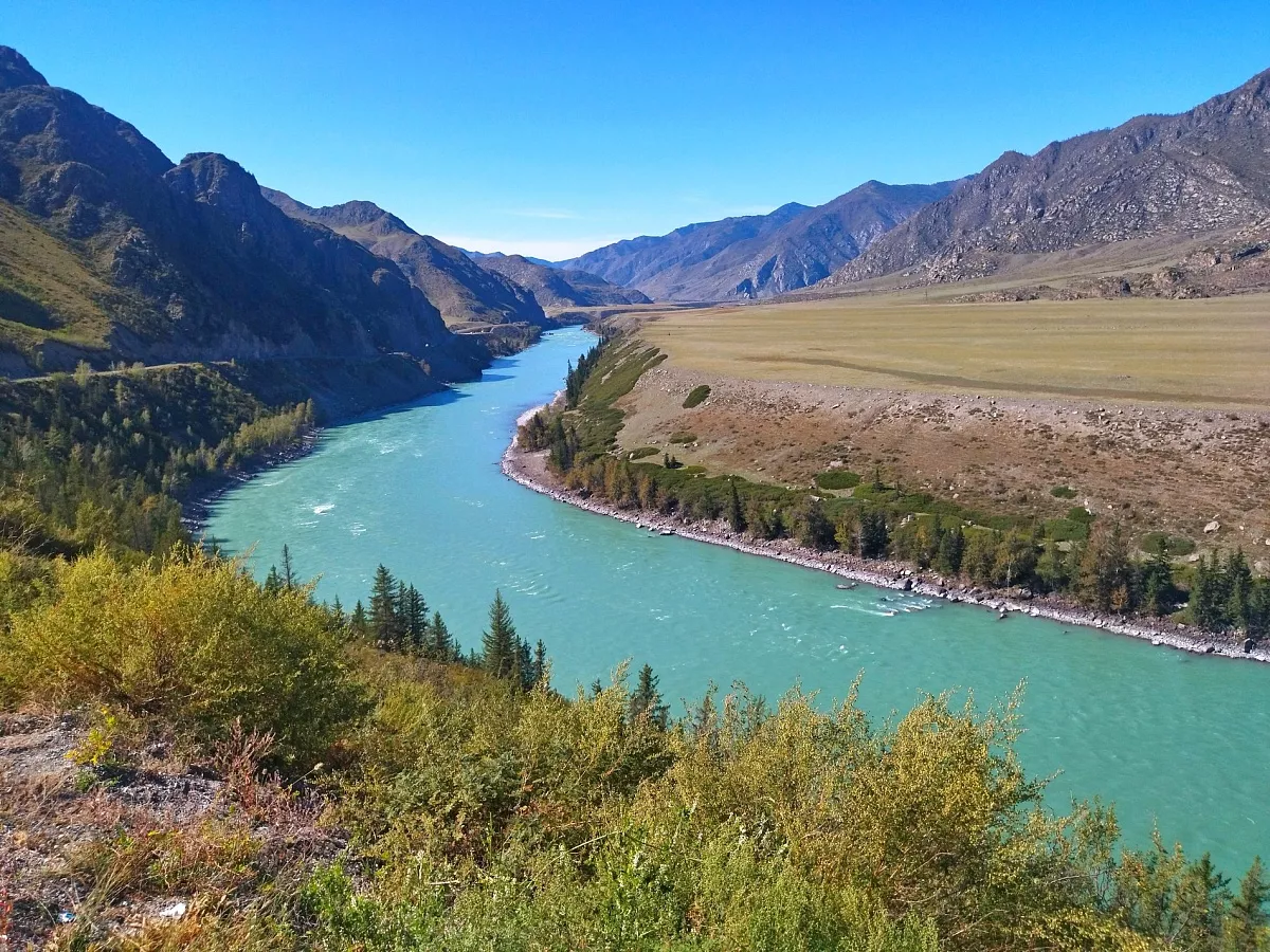 Вскоре мы начнем покорение первого горного перевала Семинского, высотой 1717 метров. После него мы ненадолго свернем в сторону и проедем по ультрасовременной дороге до устья реки Урсул. Эта дорога была построена чуть больше 10 лет назад с применением новейших технологий. Здесь нас ждет первая пешая прогулка мы спустимся к месту впадения Урсула в Катунь и полюбуемся мощью двух рек, сливающихся в одном русле.