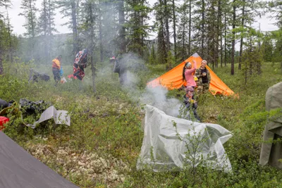 Здесь рядом с местом стоянки был лагерь заключенных системы ГУЛАГ. Место лагеря обросло деревьями и в прошлом году мы его обнаружили случайно.