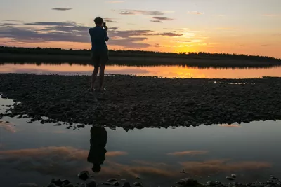 После переправы через реку Алдан мы разобьём лагерь на берегу протоки. Здесь отличные условия для рыбалки на спиннинг и поплавочную удочку.