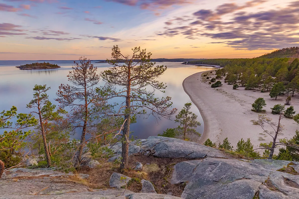 Нас ждут путешествия на ладожские шхеры на лодке, ужины на островах, прогулки по песчаным пляжам, подъемы в горы и шум водопадов.