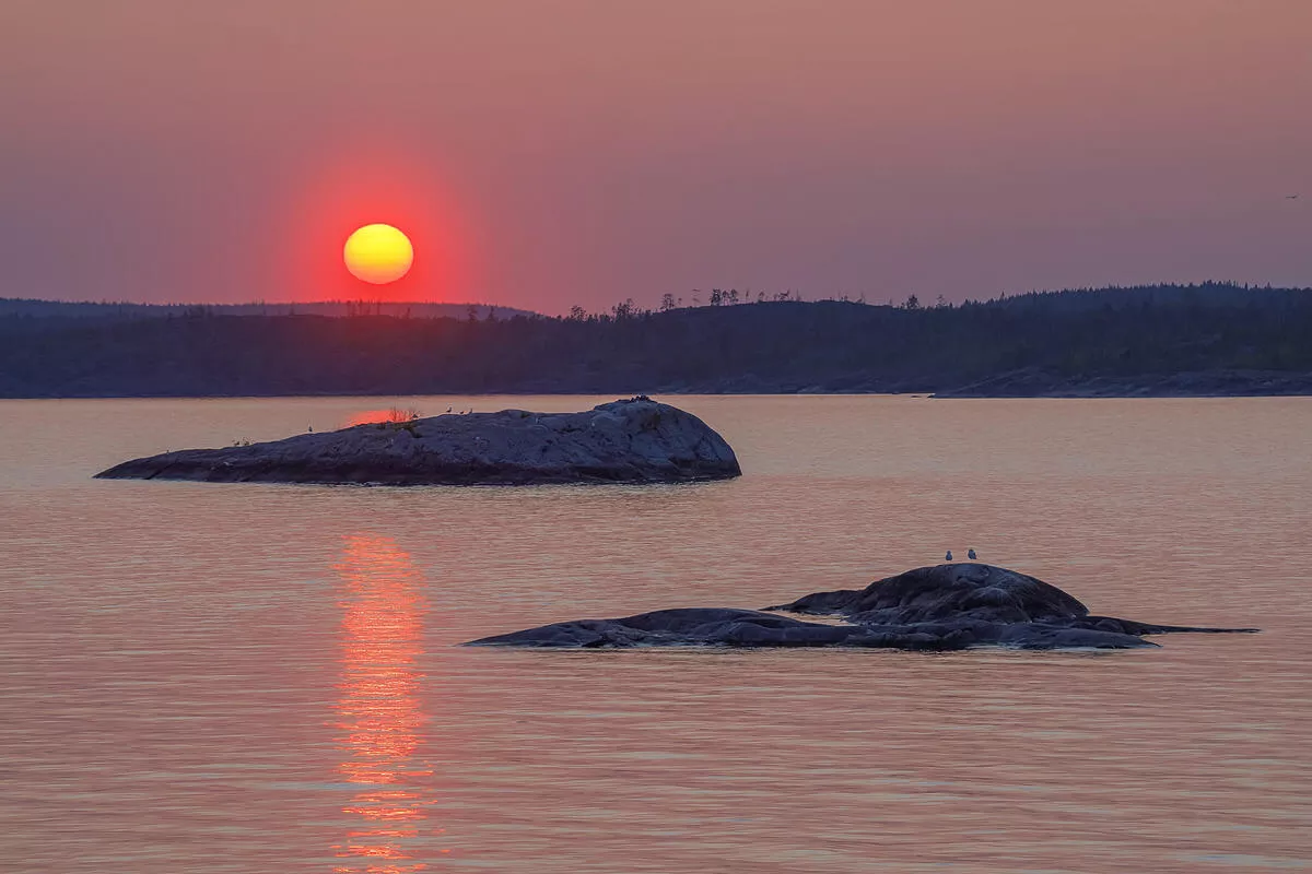 В июне на Ладожском озере начинаются белые ночи, а это значит, что режимное (съемочное) время для фотографов длится почти всю ночь. Мы будем выходить на лодке на закат, снимать всю ночь и только утром ложиться спать.