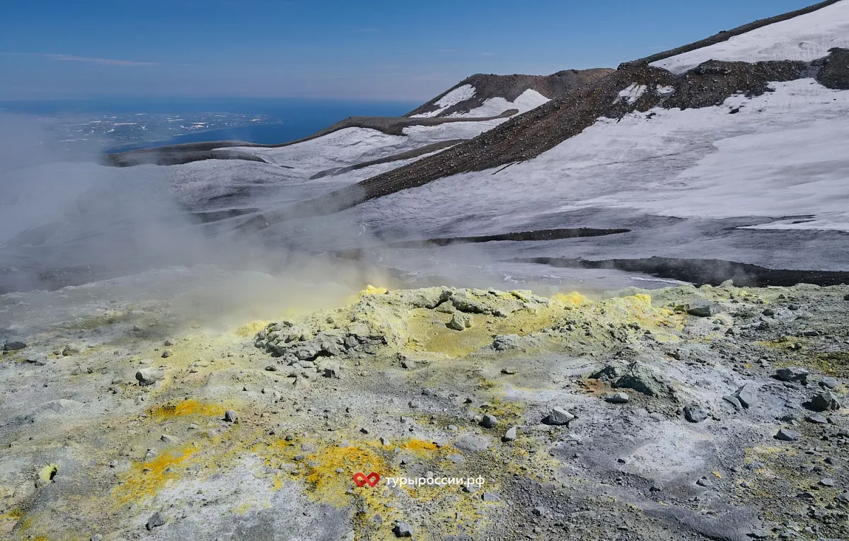 Сегодня вам предстоит восхождение к кратеру вулкана Заварицкого на острове Симушир. С вершины вам откроются завораживающие виды на озеро Бирюзовое и вулканические ландшафты.