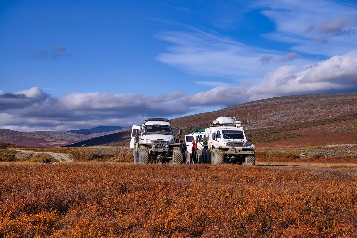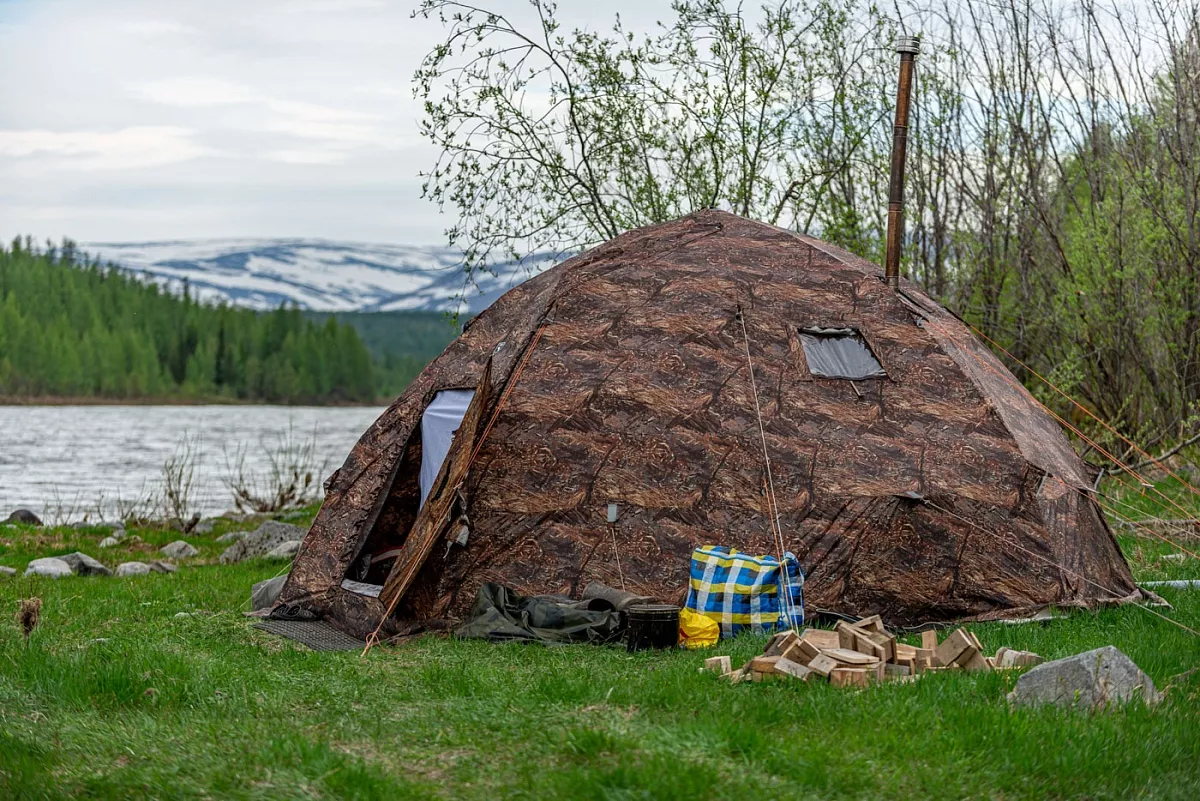 По прибытии к месту лагеря, разгружаем вездеход, организуем лагерь.
