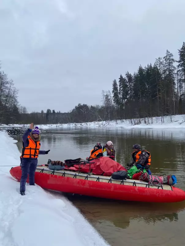 С нами абсолютно безопасно, позитивно и не страшно! На реке совсем не холодно, а вот ОДЕВАТЬСЯ все же надо по зимнему! Чистое время сплава займёт около 5 часов.